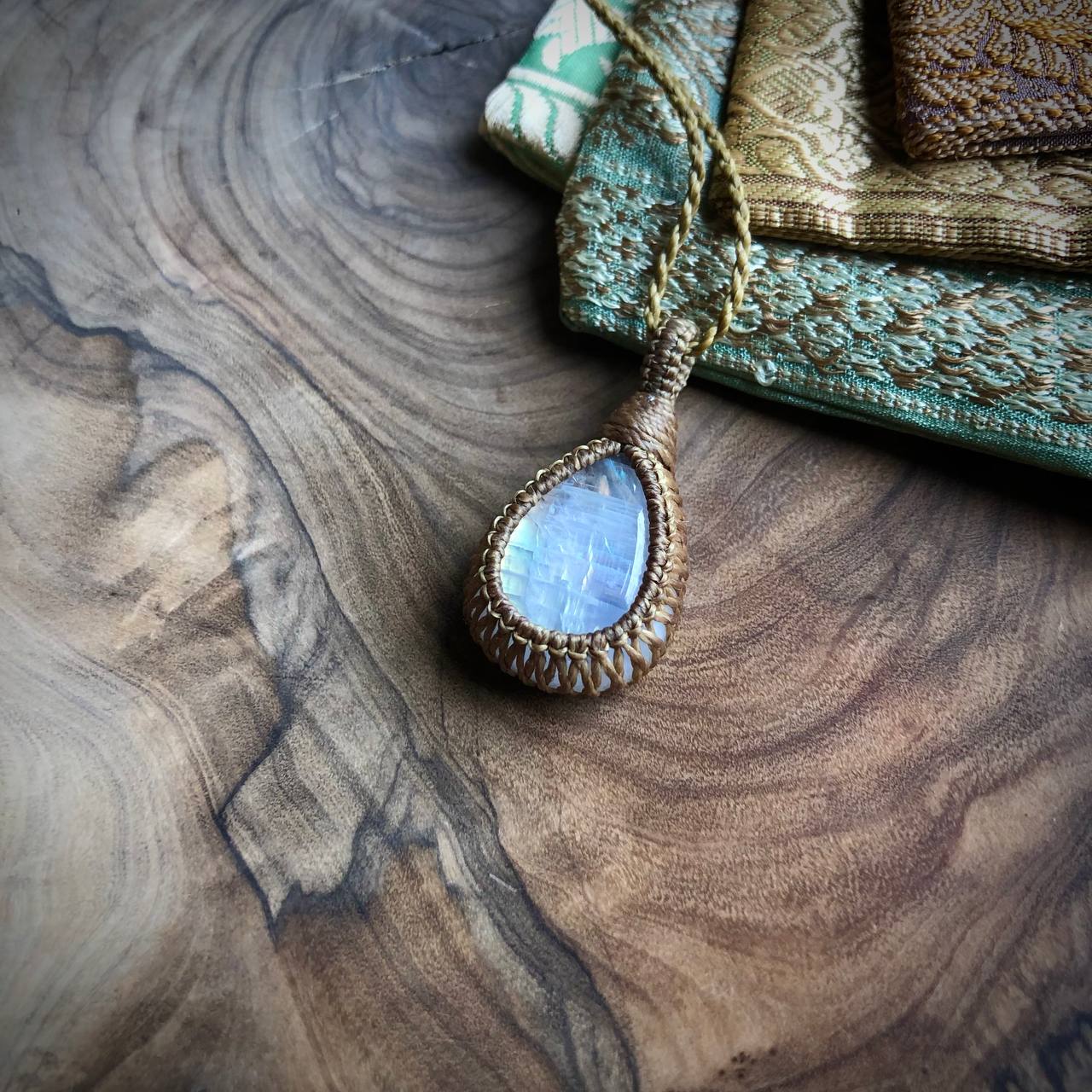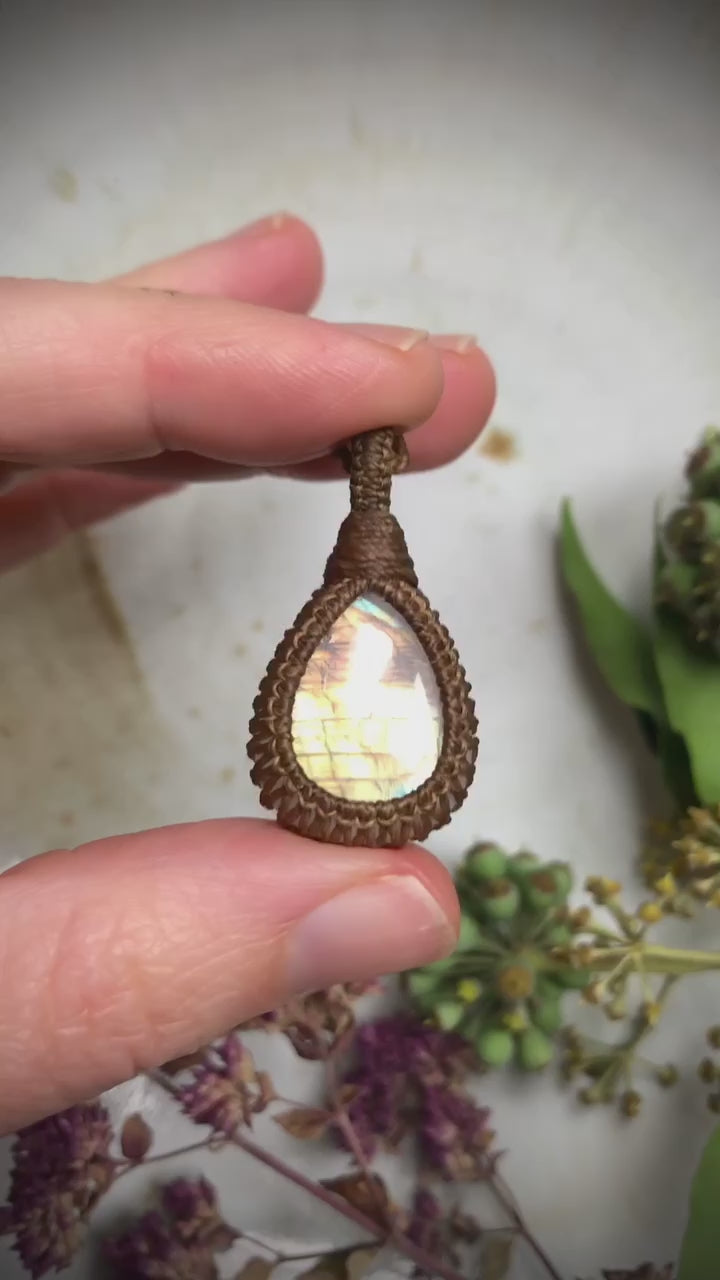 Deze Regenboog Maansteen is gewoonweg prachtig! Meestal kom je Regenboog Maansteen tegen als blauwe steen, maar heel af en toe heb je unieke vondsten, zoals deze... Groene en gele tinten vloeien samen en stralen als het zonlicht op een prachtige herfstdag. Verpakt als cadeau, in een mooi zakje van gerecyclede sari-stof.