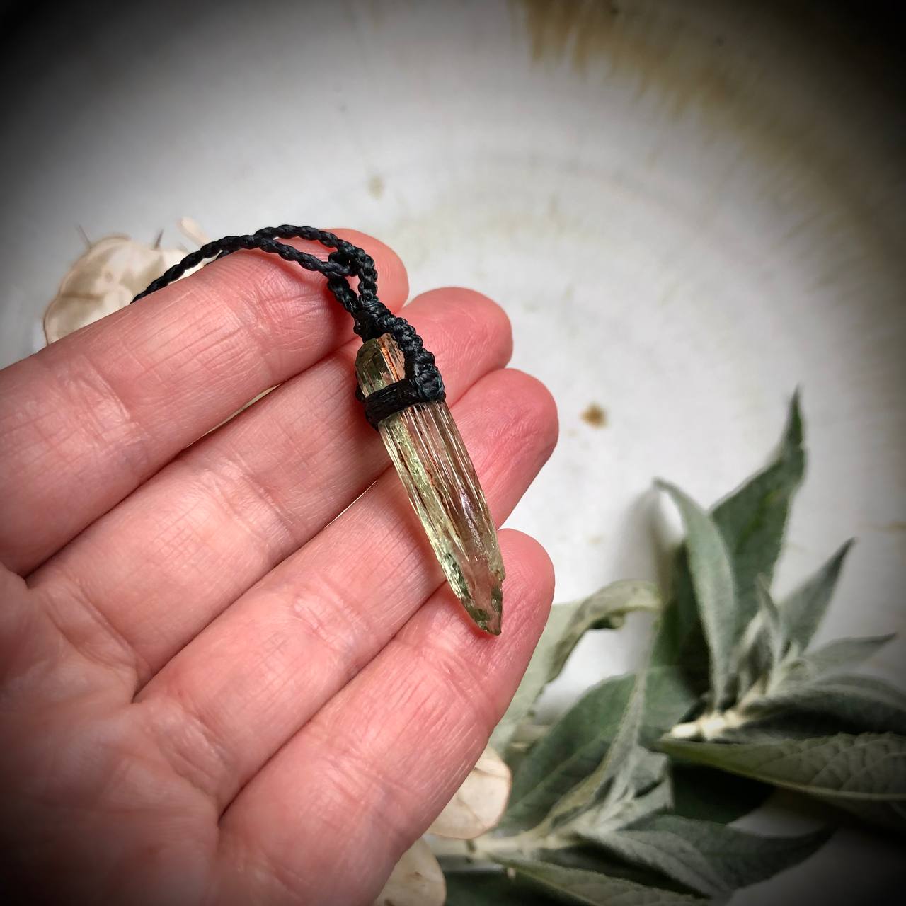 Heb je ooit zo'n prachtige Heliodoor kristal gezien? Het kleuren en lichtspel is geweldig, je kan er uren en uren naar kijken. Het groen is een weldaad voor de ziel en zal je direct een gevoel van rust en harmonie brengen. Ik vind het altijd een enorm feest om te werken met kristallen die niet door de mens geslepen zijn maar een unieke creatie zijn van moeder natuur. En dit is echt zo'n kunstwerkje!