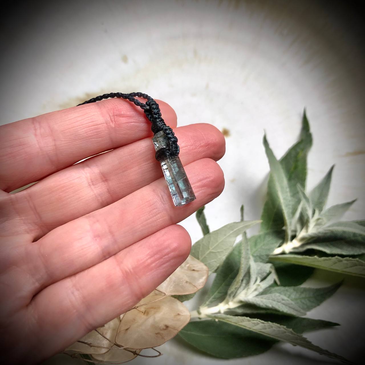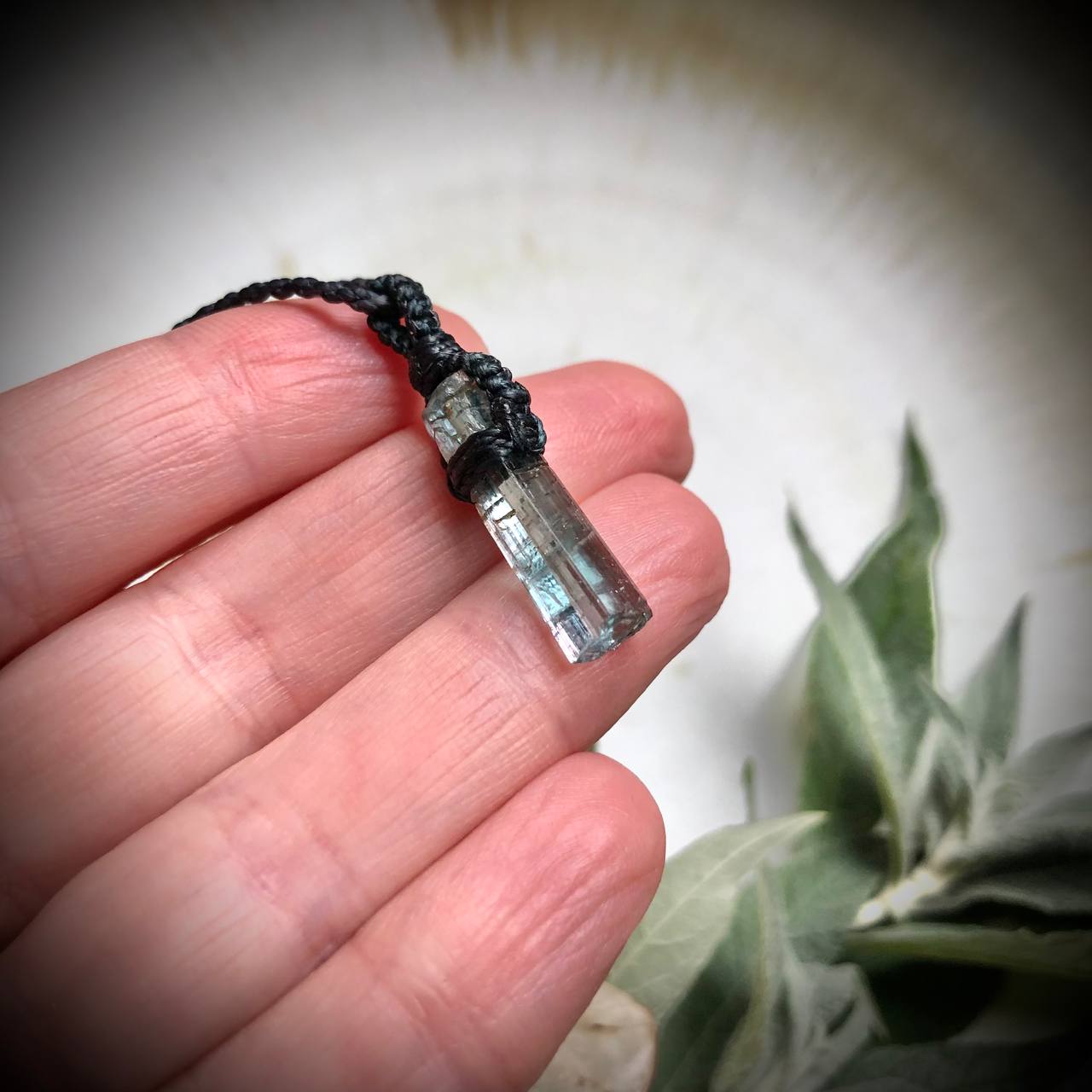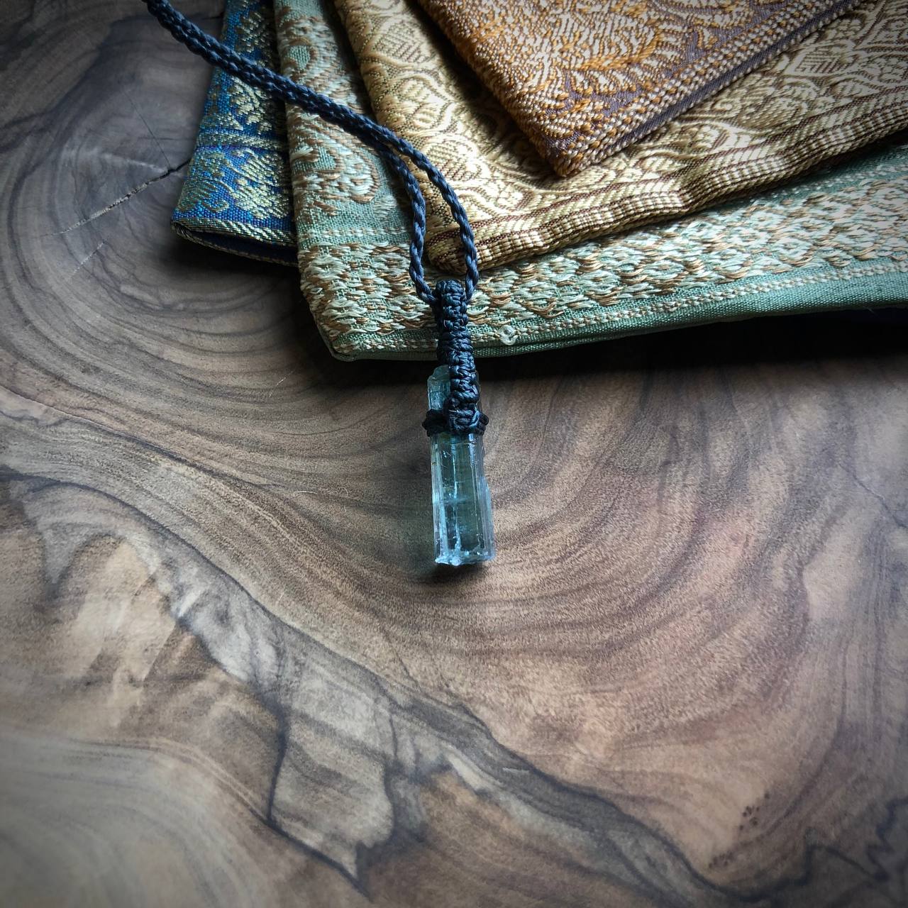 Een kristal waar mijn hart een sprongetje van maakt! Het is een prachtige Indigoliet kristal (blauwe Toermalijn) met als klein lief detail een vleugje lila paars aan de zijkant, als een dun omhulsel rondom de ijsblauwe kristal. Toermalijnen zijn er in alle kleuren, maar af en toe heb je van die exemplaren die je doen realiseren hoe fantastisch het rijk der edelstenen werkelijk is.