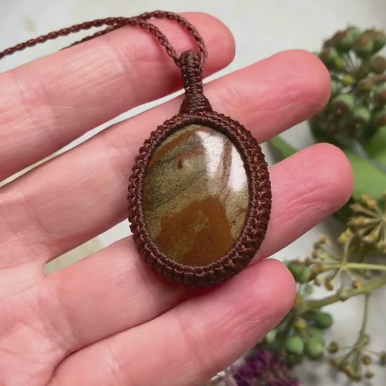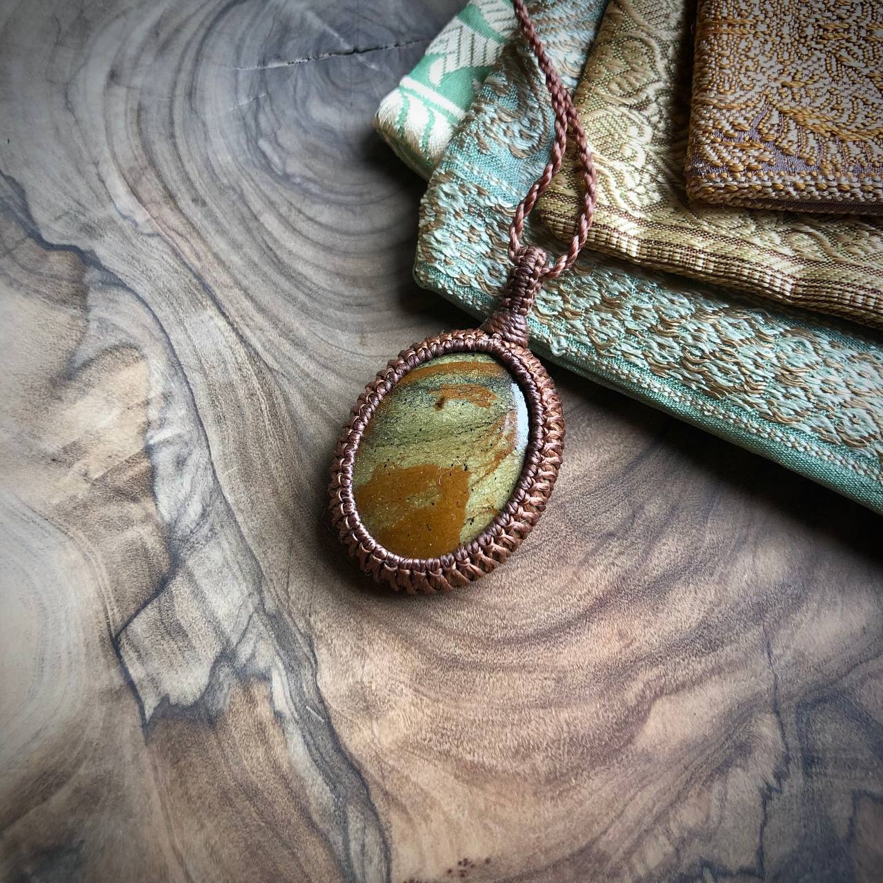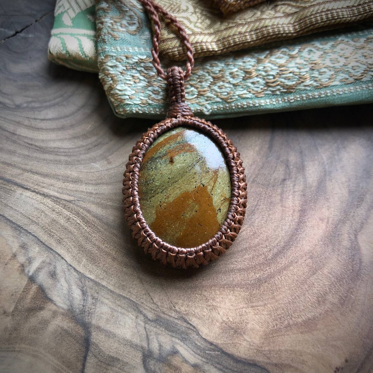Niet alleen een prachtig delicaat patroon, maar ook het gevoel van deze steen is zacht, natuurlijk en dicht bij de aarde. Hij komt uit de bergen in het zuiden van Spanje, Andalusië, en wordt Peridotiet of Spaanse Olivijn genoemd. Het is een echt geschenk van de aarde en behoort toe aan een ziel die sterk verbonden is met moeder aarde. Hij is met de hand verwerkt tot een ketting met een sterk en duurzaam koord.